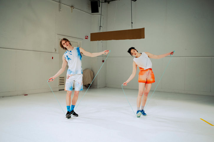 This performance developed out of the physicality of rope-skipping, a long afternoon of reminiscence, and a co-reading of Hermann Hesse’s Kinderseele and Demian (two novels that delve into a child’s experiences of guilt and shame, of light and shadow.) Domenik and Ashley grew up on opposite ends of the world. In this transmedial performance, they have built a shared world out of fractured memories that are charged with violence and intimacy. Each element – choreography, text, scenography, and sound – has been crafted by them, by hand. By placing separate memories into the same space, they activate speculative realities in which they navigate hurt, dissociation, and change, no longer alone but together. The performance offers a personal, visceral, and sometimes puzzling experience that invites spectators to connect through their own memories.